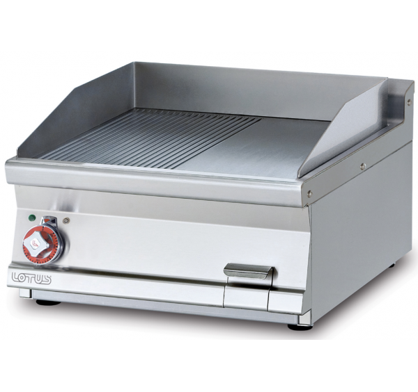 1 zónás Lotus asztali elektromos rostlap félig sima, félig bordázott, öntöttvas sütőfelülettel