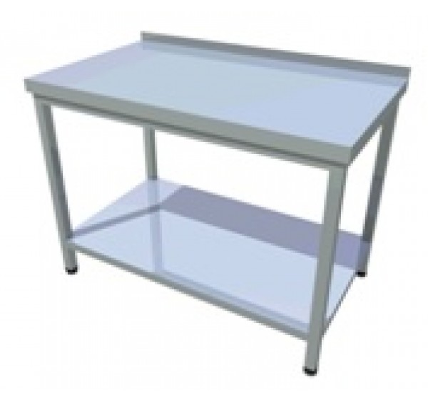 190x65 cm-es rozsdamentes munkaasztal alsó polccal, hátsófelhajtással