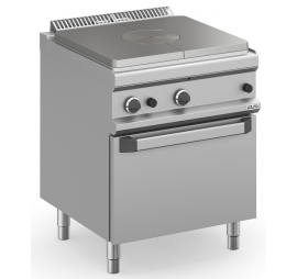 Telelapos gáztűzhely gázüzemű sütővel rozsdamentes acél kivitelben. Sütő mérete: 56x66x31 cm. Előlapon elhelyezett IPX5 vízállóságú forgatógombos kezelőfelülettel, piezoelektromos gyújtással, őrlánggal, biztonsági termosztáttal és termosztatikus hőmérséklet-szabályozással. 1db max.9 kW teljesítményű égőfejjel,10mm vastag öntöttvas főzőlappal. Hőfoktartomány: 80-500°C között. Gázcsatlakozás: 1/2". Súly: 116 kg. Új robosztus dizájn, csavar nélküli hátsó lemez és kémény, melyek egyszerűen eltávolíthatóak, megkönnyítik a készülék bekötését, majd a későbbiekben a berendezés tisztítását.