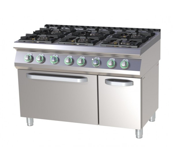 6 égőfejes RedFox gáztűzhely elektromos, statikus sütővel