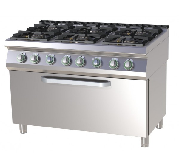 6 égőfejes RedFox gáztűzhely elektromos, statikus sütővel