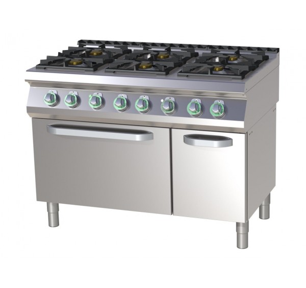 6 égőfejes RedFox gáztűzhely elektromos, statikus sütővel
