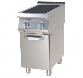 Rozsdamentes acél burkolattal, 2 db, egyenként 3 kW teljesítménnyel üzemelő, süllyesztett, szögletes, 300x300 mm méretű, öntöttvas főzőlappal rendelkezik. A főzőlapok belső hővédelemmel vannak ellátva a túlmelegedés ellen.