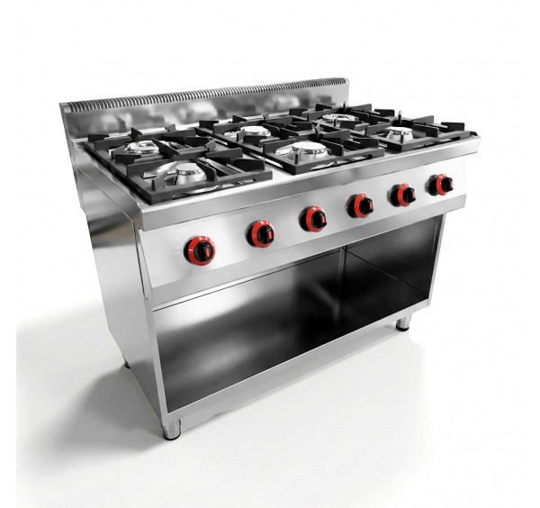 6 égőfejes álló gáztűzhely nyitott semleges tárolóval