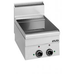 Asztali elektromos üzemű tűzhely 2 zónás üvegkerámia főzőlappal (1,8 kW + 2,5 kW), termosztátos hőfokszabályzóval, gyors felfűtéssel (0 - 300 °C), rozsdamentes acél kivitelben. Könnyen tisztítható, higiénikus.