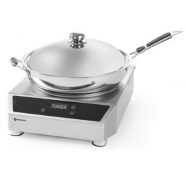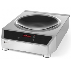 Asztali 1 zónás indukciós wok főzőlap, fekete üvegkerámia indukciós zónával, digitális hőmérséklet és főzési idő beállítási lehetőséggel, érintőgombos vezérléssel, digitális kijelzővel. A berendezést, büfékbe és kis forgalmú vendéglátóhelyekre ajánlott! Csak étellel feltöltött edényt tegyen a kerámia felületre, mert az üres edény ráhelyezésével és működtetésével a készülék károsodhat! A készülék számára a visszahűtés lehetőségét körültekintő módon biztosítani szükséges a gépkönyvben megfogalmazott módon! Szakszerűtlen használat, vagy a túlterhelésre utaló meghibásodás a garancia vesztését vonja maga után! A wok edény nem alaptartozék, külön rendelendő!
