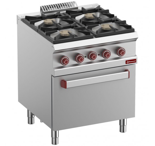 4 égőfejes Diamond álló gáztűzhely elektromos légkeveréses sütővel GN2/1