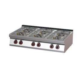 Rozsdamentes acél burkolattal, 6 db dupla lángú sárgaréz égőve..